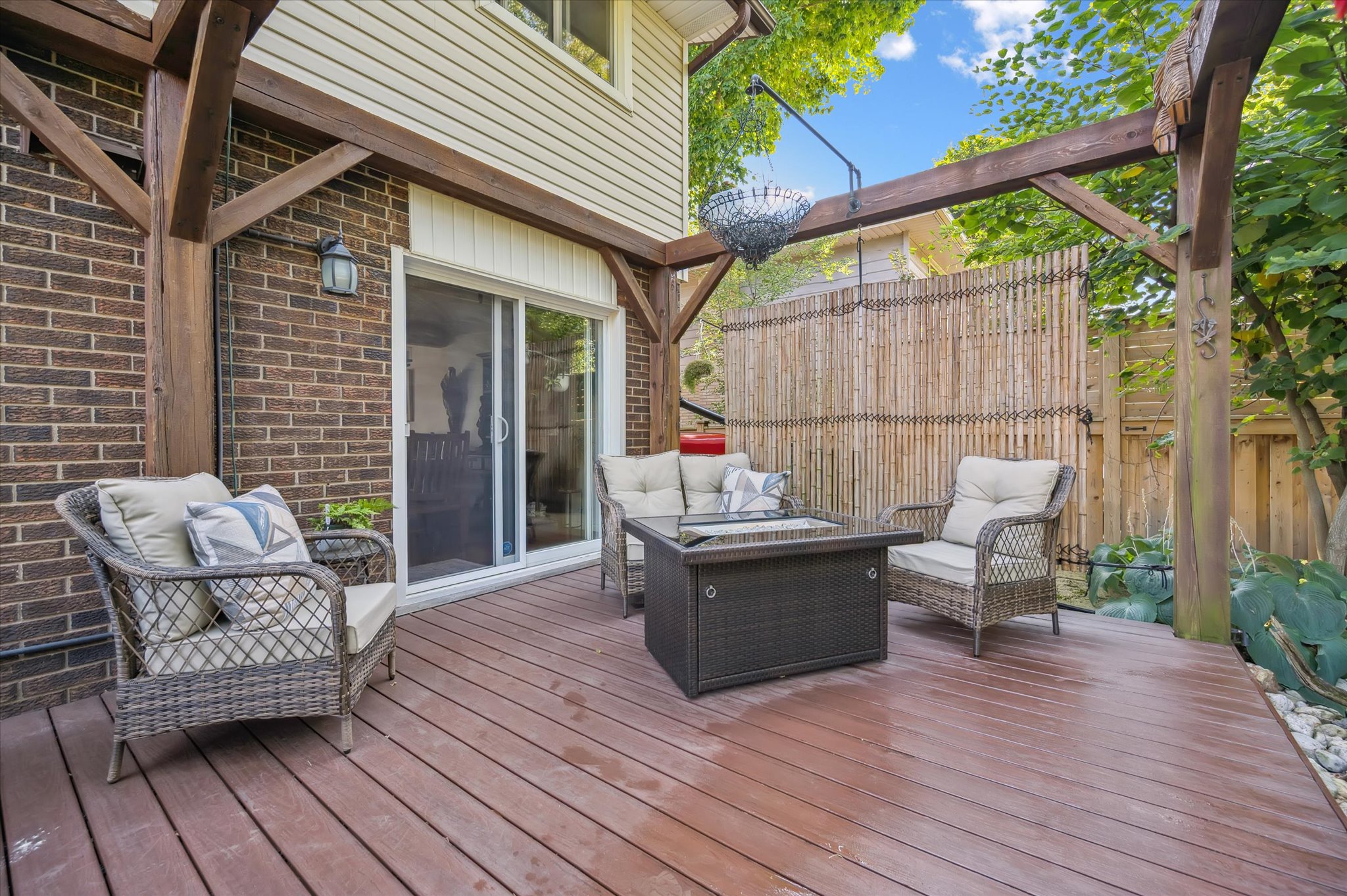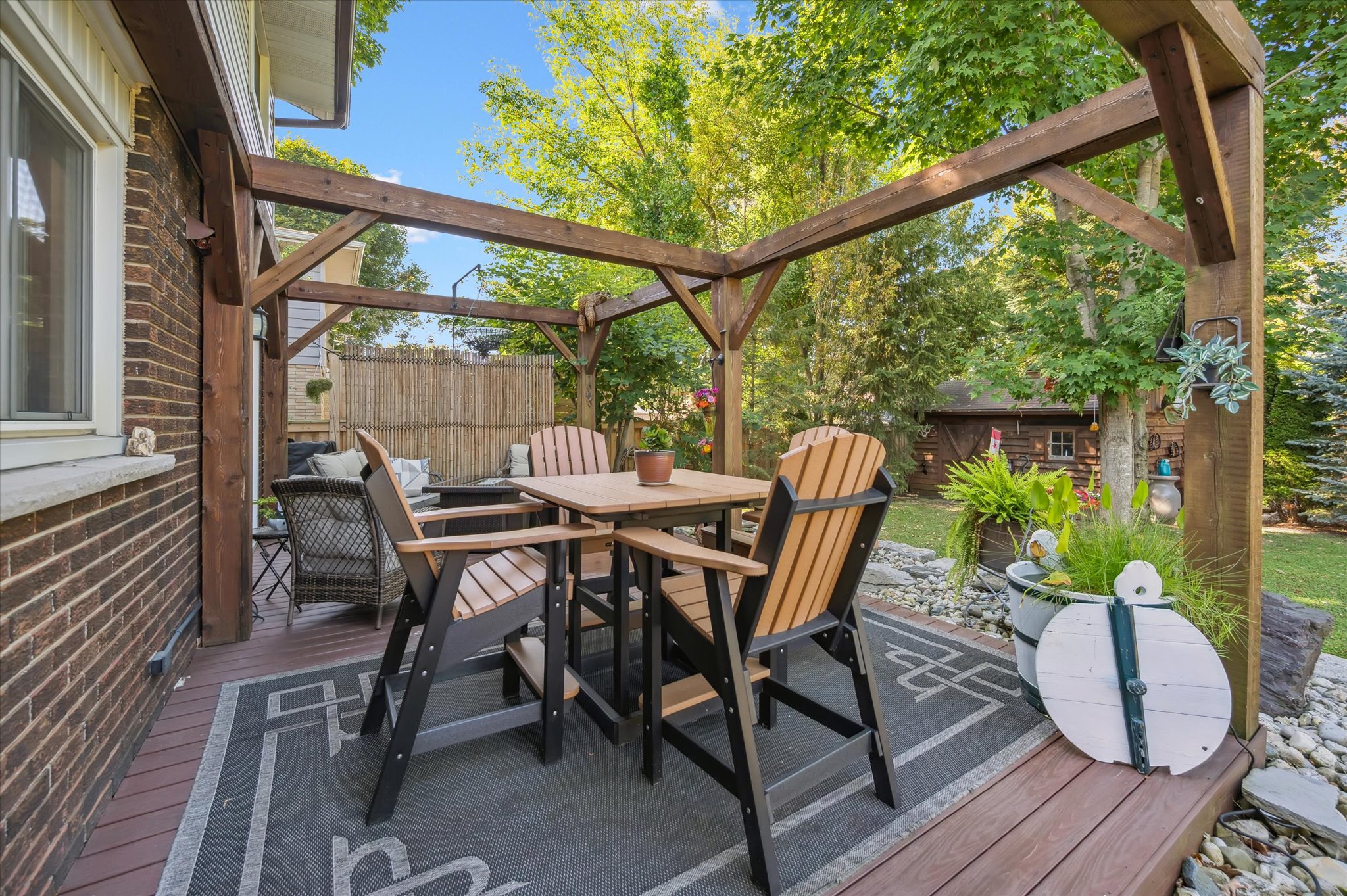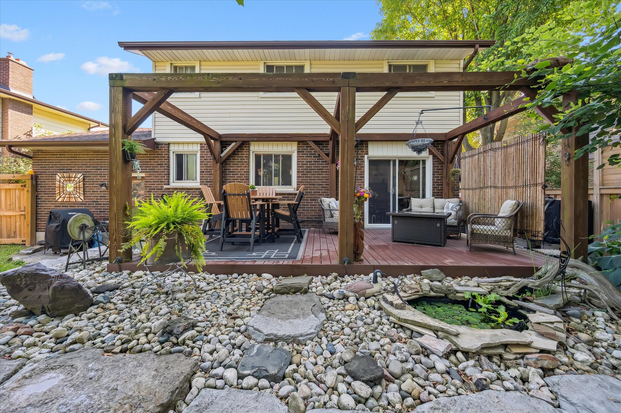 Welcome to 12 Westbury Crescent. As you approach the home, you’ll quickly notice the excellent curb appeal and clear pride of ownership. Eye-catching landscaping with stone raised garden beds, a cozy front porch with a modern glass railing, a concrete driveway, and an attached one-car garage provide parking for up to four vehicles. Head inside to the light-filled main level featuring a welcoming front living room with a huge bay window, a cherry wood kitchen with granite countertops, and a separate dining area with a sliding glass door leading to the private back deck. The living and dining rooms feature rich cherry hardwood flooring, and the main level is completed with a convenient powder room. Upstairs you’ll find an updated 3-piece bathroom with a glass shower, a huge custom dressing room with plenty of storage, and three generously sized bedrooms, including a spacious primary bedroom with an electric fireplace. The basement offers plenty of bonus living space with a large recreation room featuring a gorgeous gas fireplace, a custom wine cellar, laundry room, plus a spacious utility room with a bathroom rough-in and additional storage. The backyard is your own private oasis with a quality-built deck with composite boards and cedar posts, surrounded by thoughtfully designed gardens, a pond, cedar shed, solid wood fence, and mature trees. All of this is located in a fantastic neighbourhood close to great schools, parks, easy access to groceries, Highway 401, and the Chilligo Conservation Area. Additional upgrades include blown-in insulation in the attic, vinyl siding with added insulation behind, deck reinforcement and hot tub rough-in, as well as gutter guards on both the home and shed.